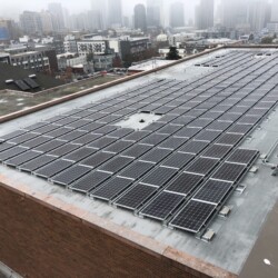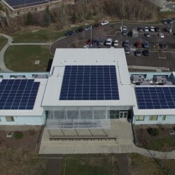 The projects below span a range of installation types: flat roofs, gabled and shed roofs, metal seam, membrane, barrel roofs, ballasted systems, ground mounts, parking canopies, tilt systems, and community solar. Every system is engineered in-house and built by our own licensed electricians — sized to each organization's energy goals and local incentives.
